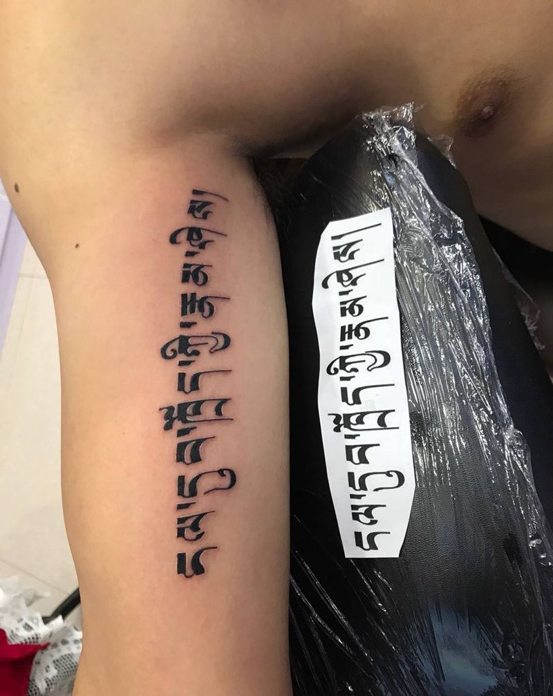 当前位置: 首页 >山东省烟台市纹身店-鼎力刺青专业纹身会所纹身图案>大臂内侧梵文纹身图片