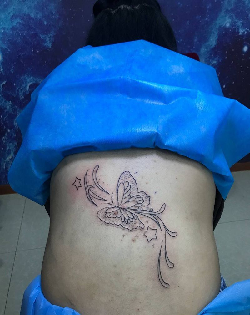 当前位置: 首页 >山东省烟台市纹身店-鼎力刺青专业纹身会所纹身图案>后背彩蝶纹身图片