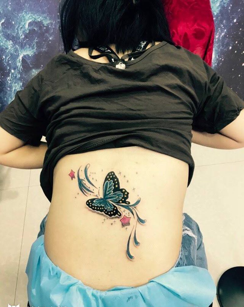 当前位置: 首页 >山东省烟台市纹身店-鼎力刺青专业纹身会所纹身图案>后背彩蝶纹身图片