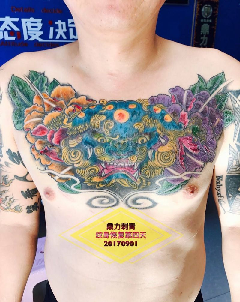 当前位置: 首页 >山东省烟台市纹身店-鼎力刺青专业纹身会所纹身图案>彩色花胸恢复全程跟踪纹身图片