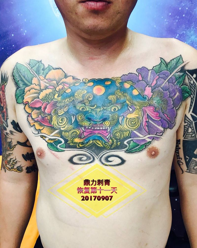 当前位置: 首页 >山东省烟台市纹身店-鼎力刺青专业纹身会所纹身图案>彩色花胸恢复全程跟踪纹身图片