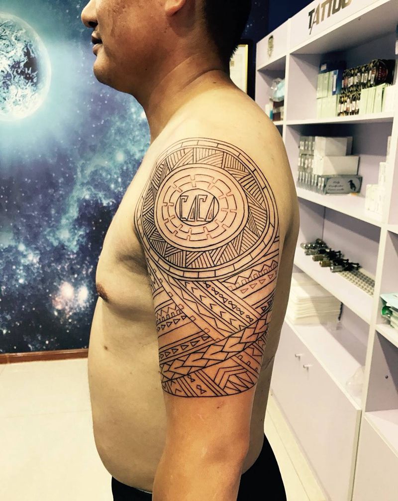 当前位置: 首页 >山东省烟台市纹身店-鼎力刺青专业纹身会所纹身图案>大臂玛雅图腾纹身图片