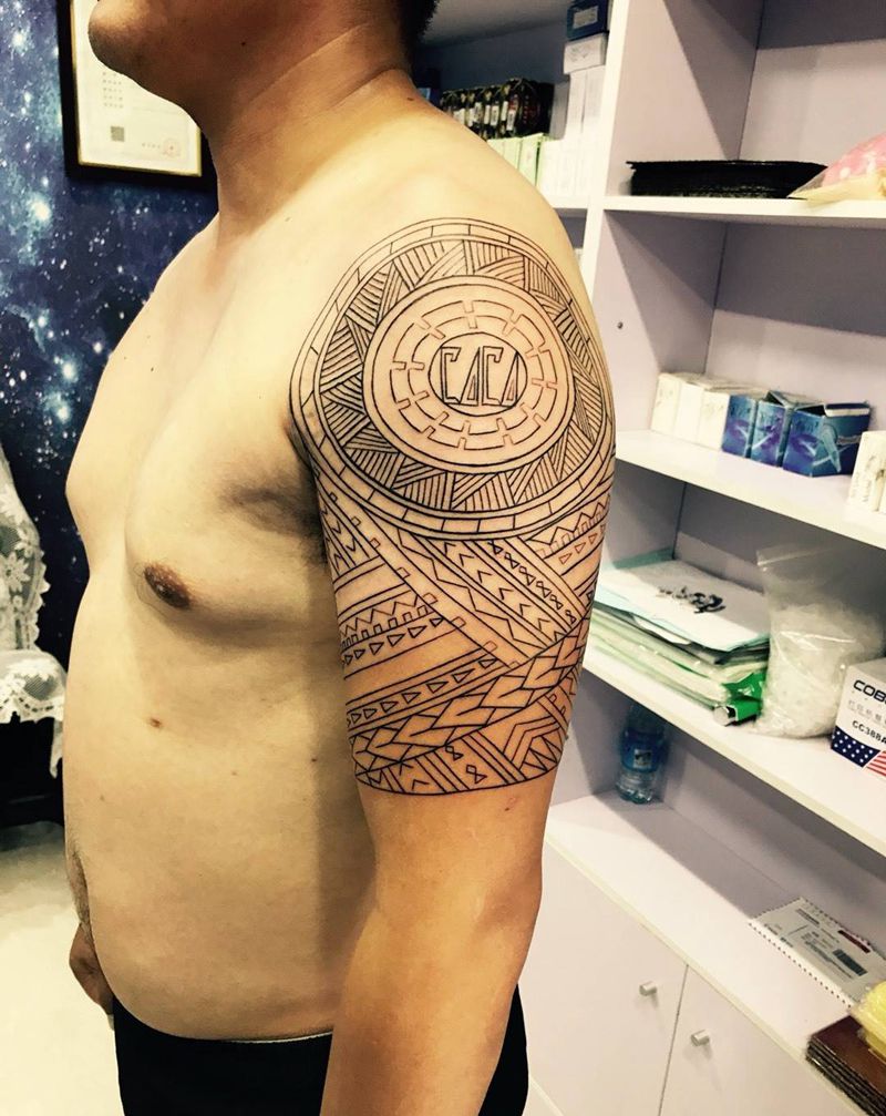 当前位置: 首页 >山东省烟台市纹身店-鼎力刺青专业纹身会所纹身图案>大臂玛雅图腾纹身图片