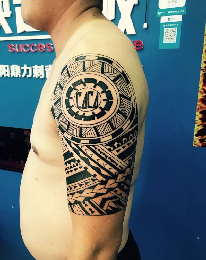 当前位置: 首页 >山东省烟台市纹身店-鼎力刺青专业纹身会所纹身图案>大臂玛雅图腾纹身图片