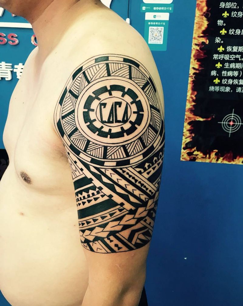 当前位置: 首页 >山东省烟台市纹身店-鼎力刺青专业纹身会所纹身图案>大臂玛雅图腾纹身图片