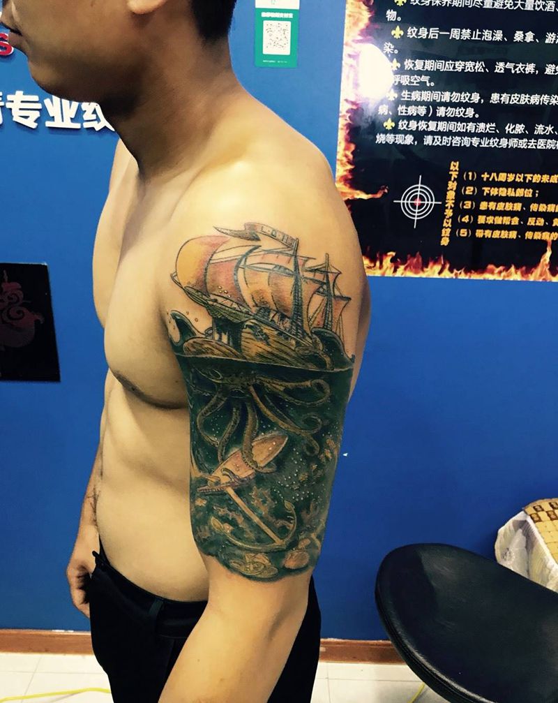 当前位置: 首页 >山东省烟台市纹身店-鼎力刺青专业纹身会所纹身图案>大臂扬帆纹身图片