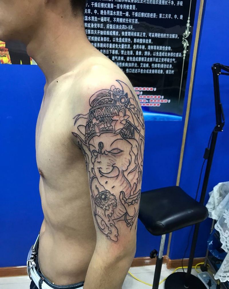 当前位置: 首页 >山东省烟台市纹身店-鼎力刺青专业纹身会所纹身图案>大臂象神纹身图片