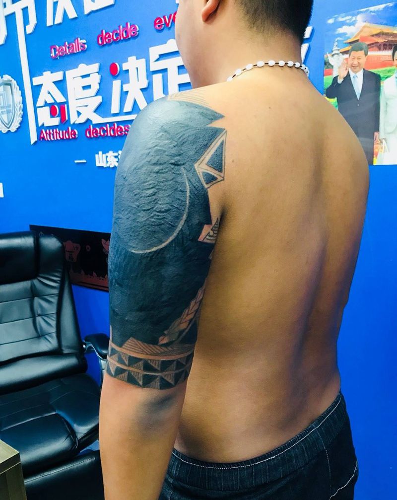 当前位置: 首页 >山东省烟台市纹身店-鼎力刺青专业纹身会所纹身图案>大臂重遮盖纹身图片