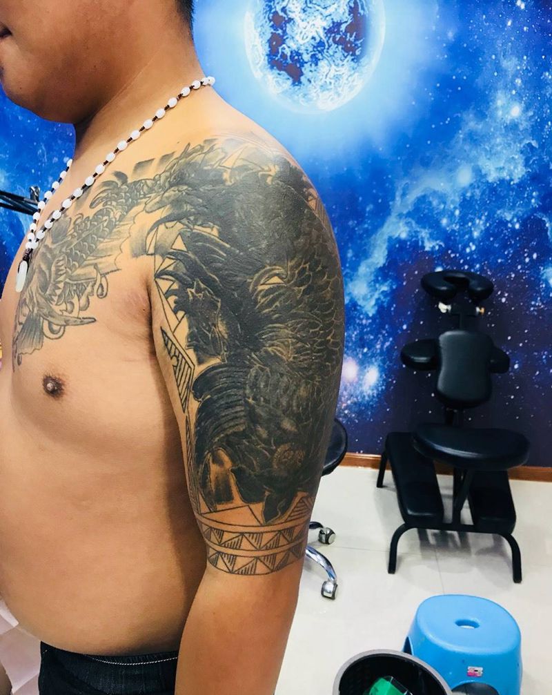 当前位置: 首页 >山东省烟台市纹身店-鼎力刺青专业纹身会所纹身图案>大臂重遮盖纹身图片
