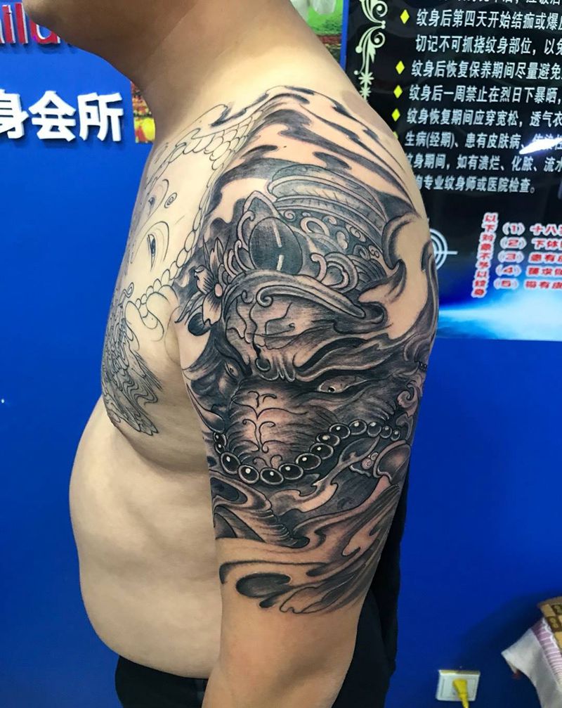 当前位置: 首页 >山东省烟台市纹身店-鼎力刺青专业纹身会所纹身图案>大臂象神纹身图片