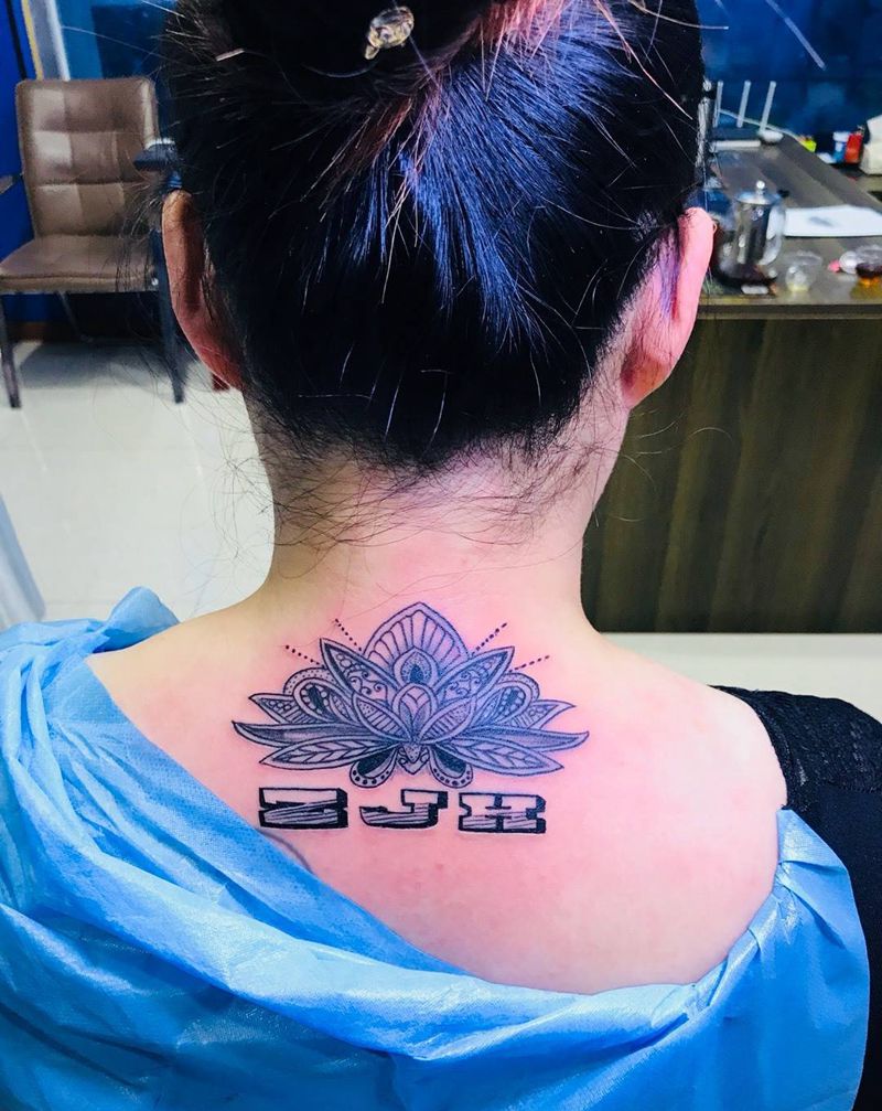 当前位置: 首页 >山东省烟台市纹身店-鼎力刺青专业纹身会所纹身图案>后颈梵花纹身图片