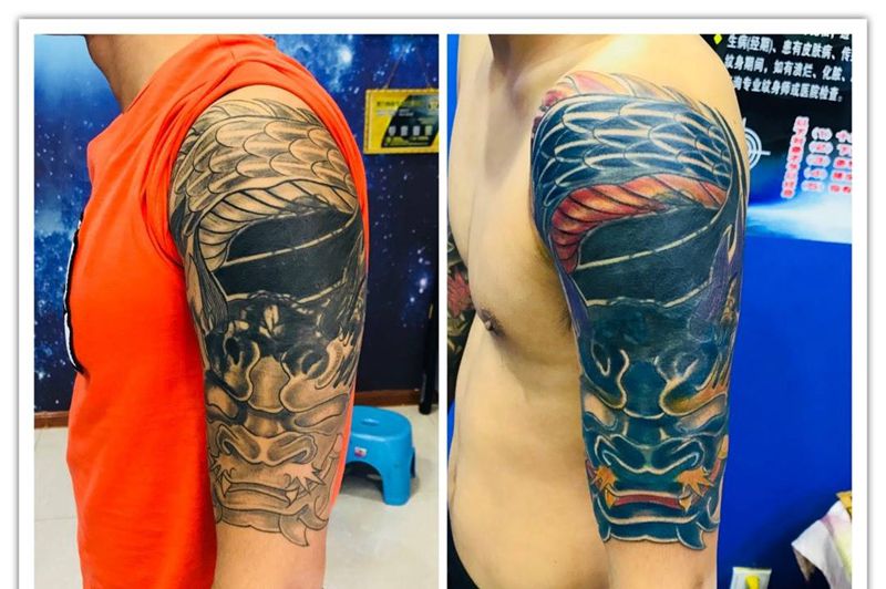 当前位置: 首页 >山东省烟台市纹身店-鼎力刺青专业纹身会所纹身图案>大臂遮盖纹身图片