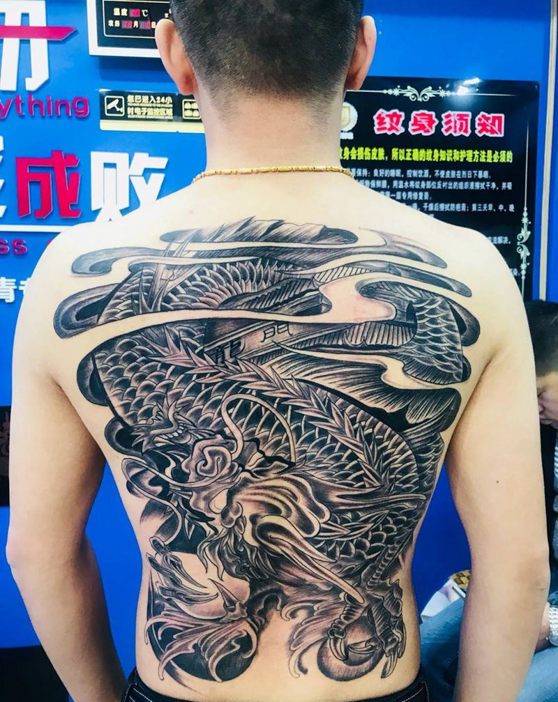 • T云龙九郎纹身图片_背部老传统云龙九郎纹身图案