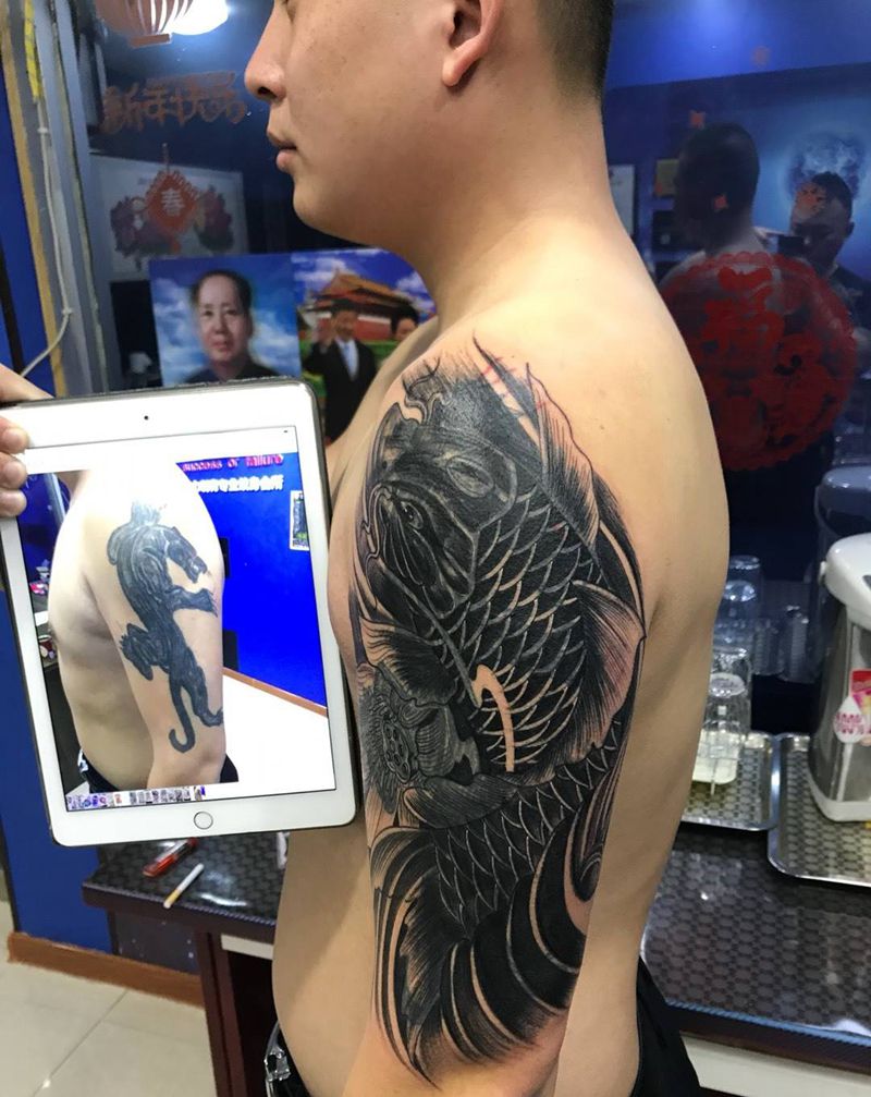 当前位置: 首页 >山东省烟台市纹身店-鼎力刺青专业纹身会所纹身图案>大臂遮盖纹身图片