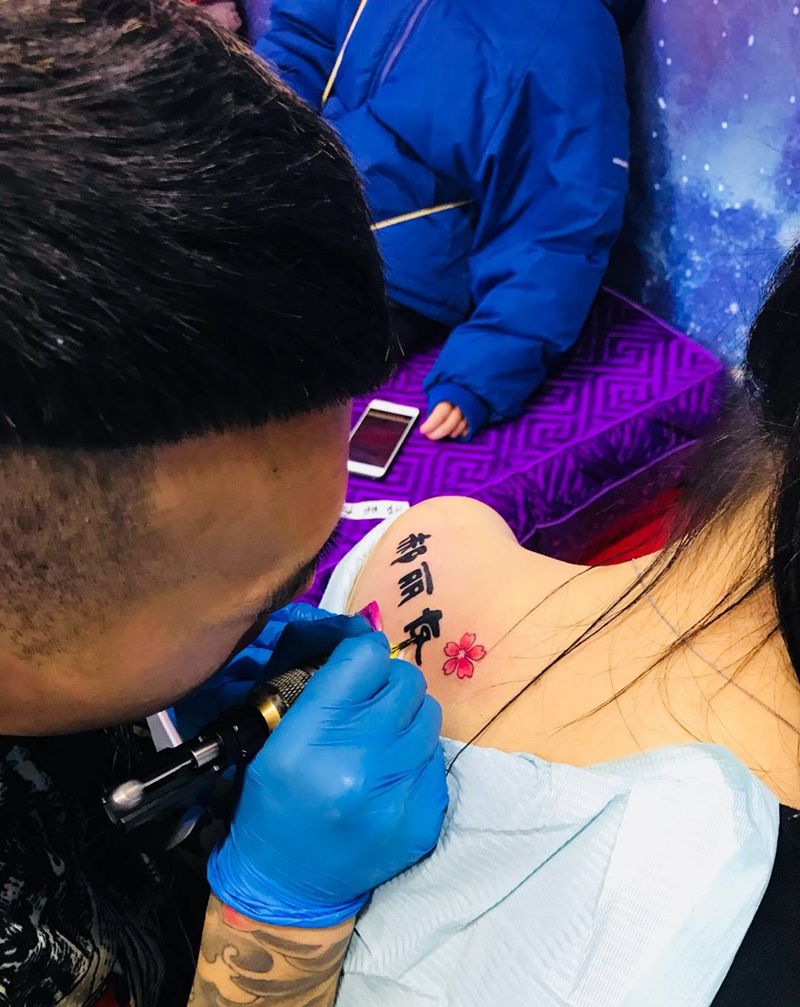 当前位置: 首页 >山东省烟台市纹身店-鼎力刺青专业纹身会所纹身图案>后肩名字控纹身图片_成品肩部清新字符纹身图案