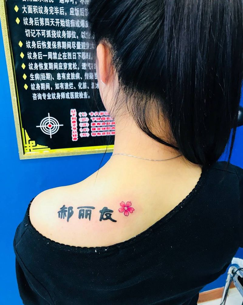 当前位置: 首页 >山东省烟台市纹身店-鼎力刺青专业纹身会所纹身图案>后肩名字控纹身图片_成品肩部清新字符纹身图案