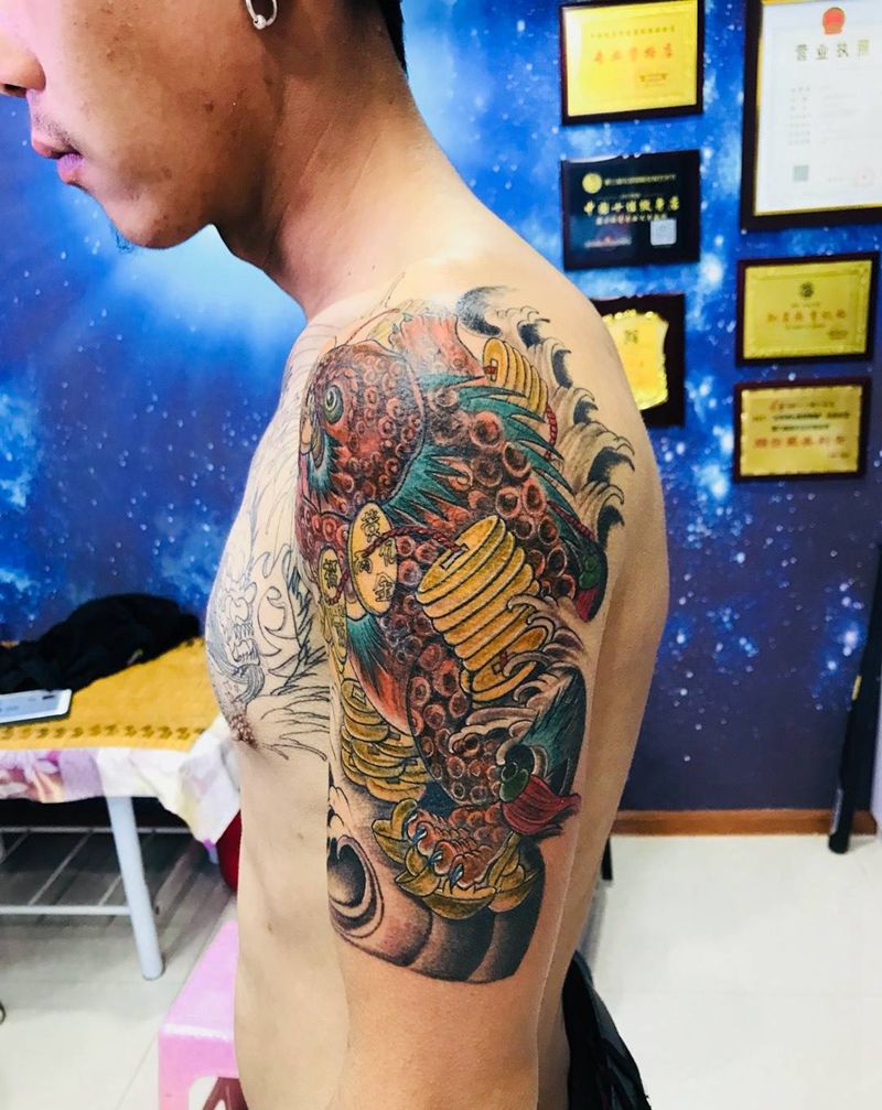 当前位置: 首页 >山东省烟台市纹身店-鼎力刺青专业纹身会所纹身图案>大臂金蟾纹身图片_手臂传统动物纹身图案