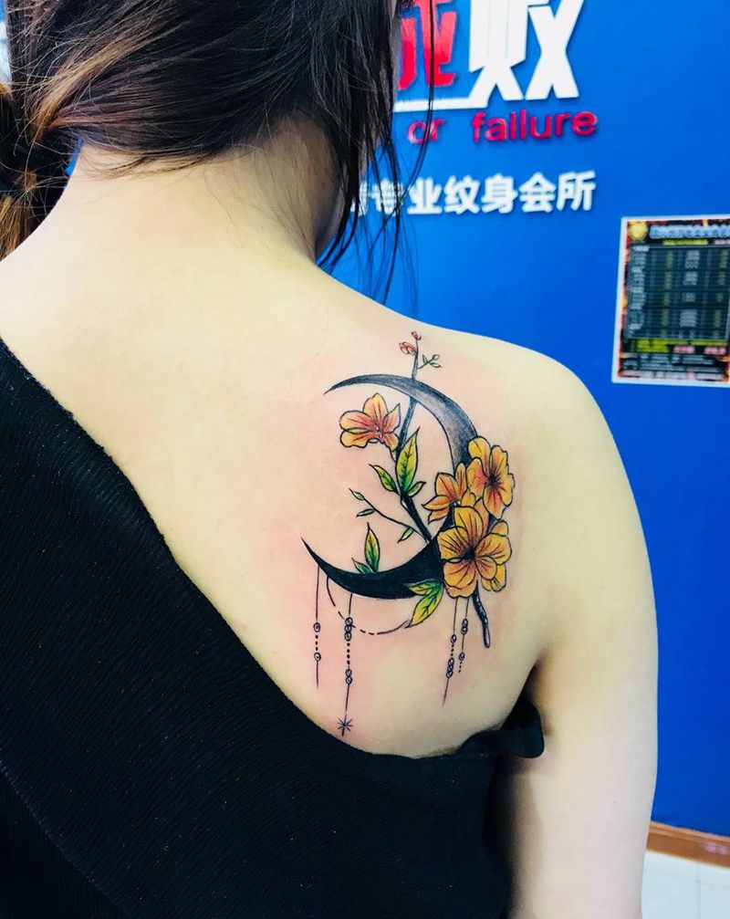 当前位置: 首页 >山东省烟台市纹身店-鼎力刺青专业纹身会所纹身图案>后肩月牙花纹身图片