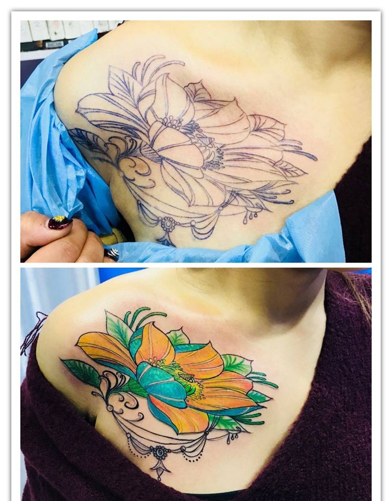 当前位置: 首页 >山东省烟台市纹身店-鼎力刺青专业纹身会所纹身图案>胸前彩莲纹身图片
