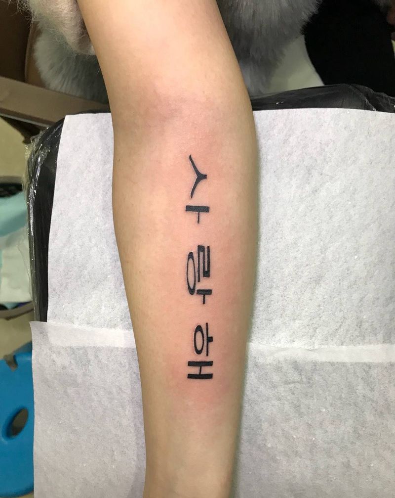 当前位置: 首页 >山东省烟台市纹身店-鼎力刺青专业纹身会所纹身图案>小臂韩文纹身图片