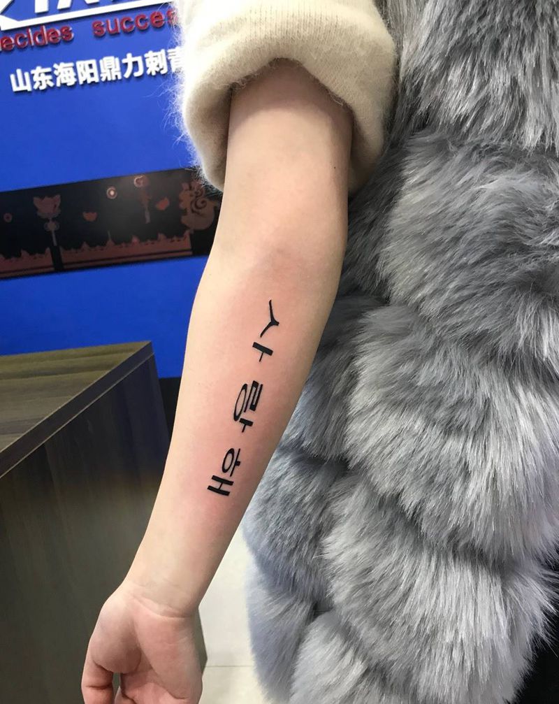 当前位置: 首页 >山东省烟台市纹身店-鼎力刺青专业纹身会所纹身图案>小臂韩文纹身图片