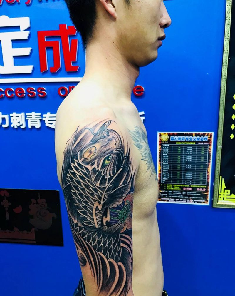 当前位置: 首页 >山东省烟台市纹身店-鼎力刺青专业纹身会所纹身图案>大臂锦鲤纹身图片