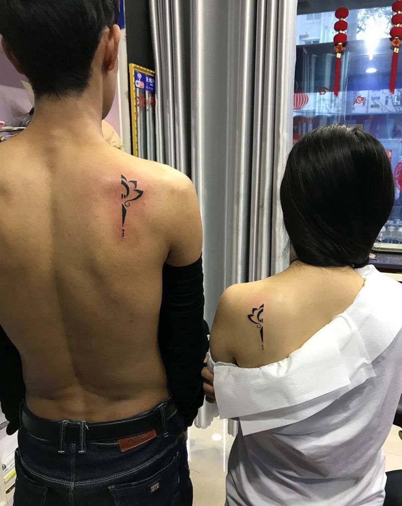 当前位置: 首页 >山东省烟台市纹身店-鼎力刺青专业纹身会所纹身图案>后肩情侣款小清新纹身图片_成品肩部传统图腾植物纹身图案
