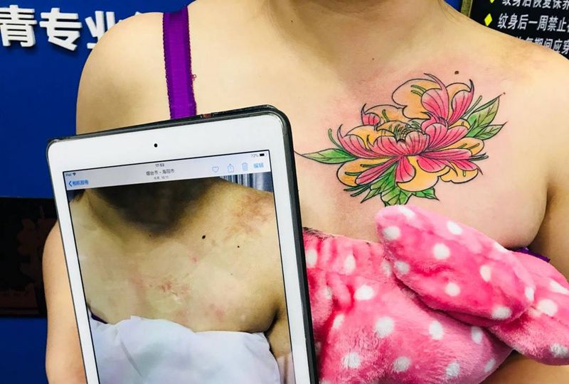当前位置: 首页 >山东省烟台市纹身店-鼎力刺青专业纹身会所纹身图案>胸前彩莲纹身图片