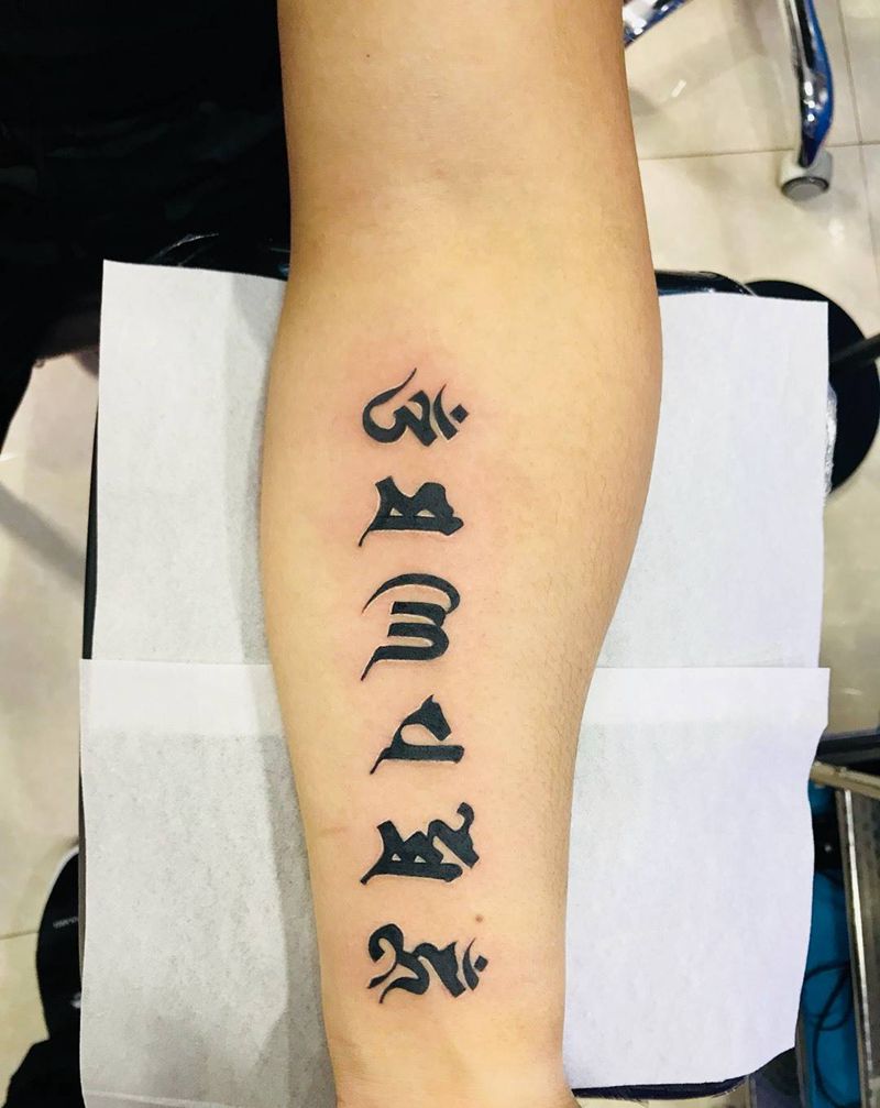 当前位置: 首页 >山东省烟台市纹身店-鼎力刺青专业纹身会所纹身图案>小臂内侧六字真言纹身图片