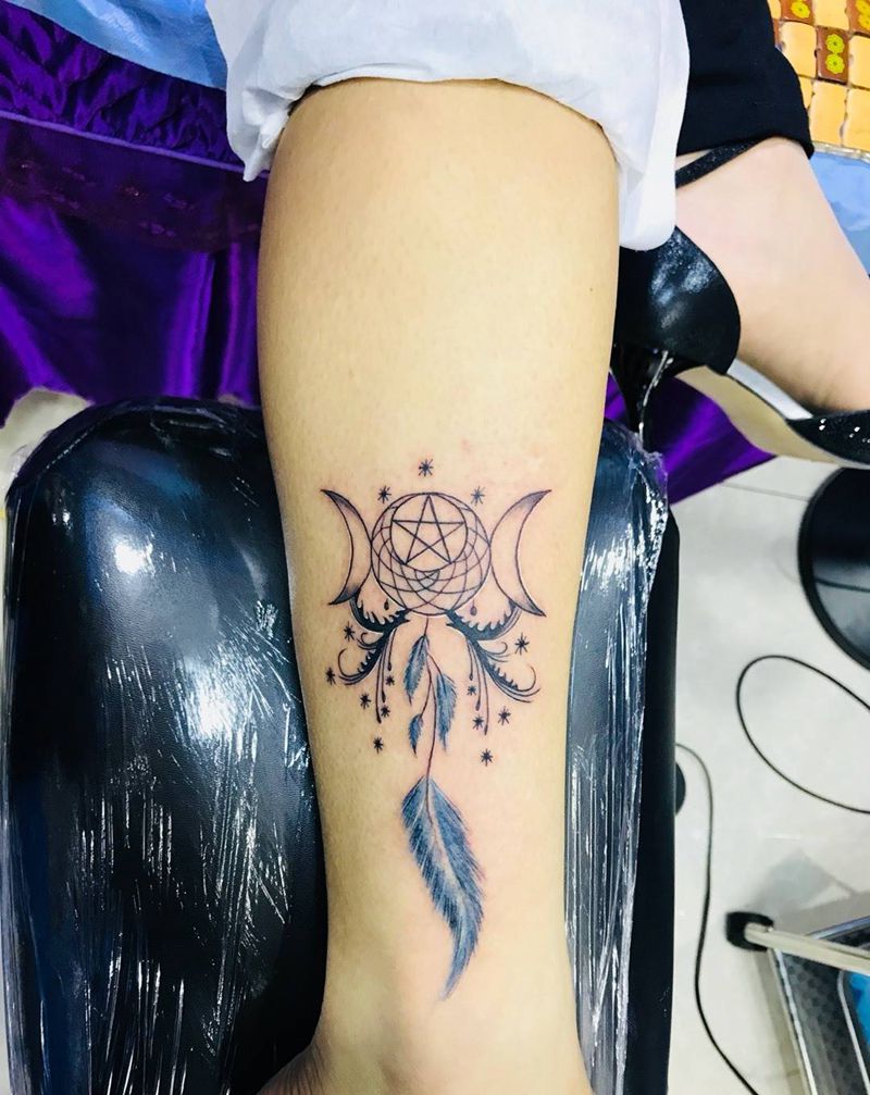 脚踝捕梦网纹身图片