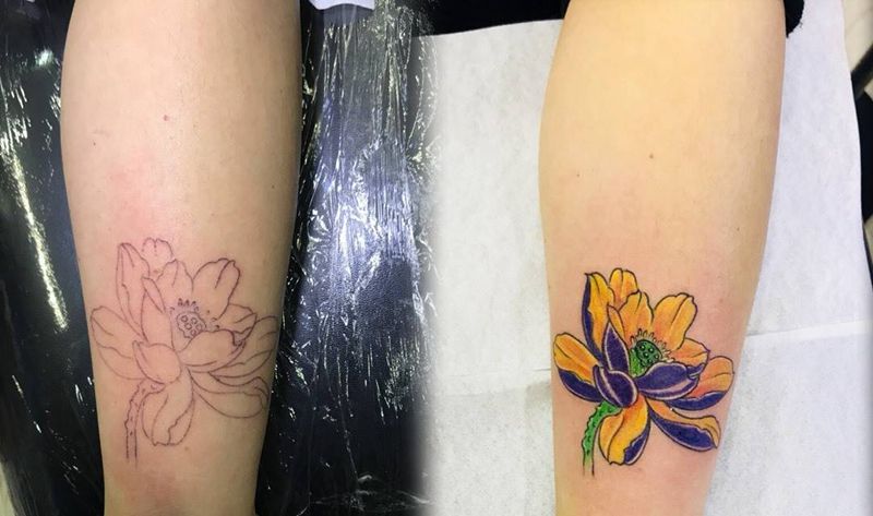 当前位置: 首页 >山东省烟台市纹身店-鼎力刺青专业纹身会所纹身图案>小臂外侧彩莲纹身图片