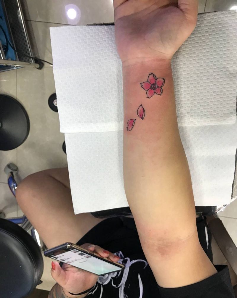 当前位置: 首页 >山东省烟台市纹身店-鼎力刺青专业纹身会所纹身图案>手腕樱花纹身图片