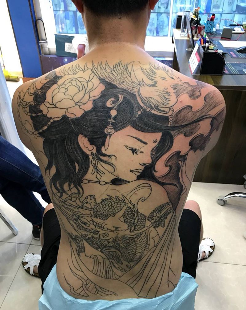 当前位置: 首页 >山东省烟台市纹身店-鼎力刺青专业纹身会所纹身图案>满背艺姬纹身图片