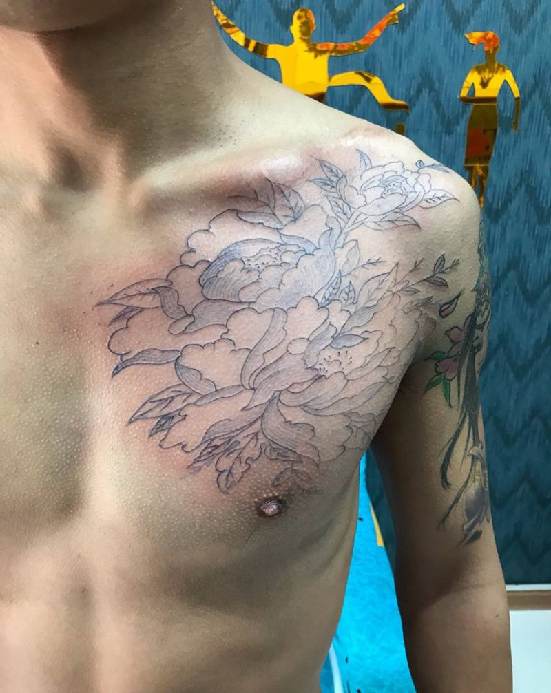 小胸花牡丹纹身图片