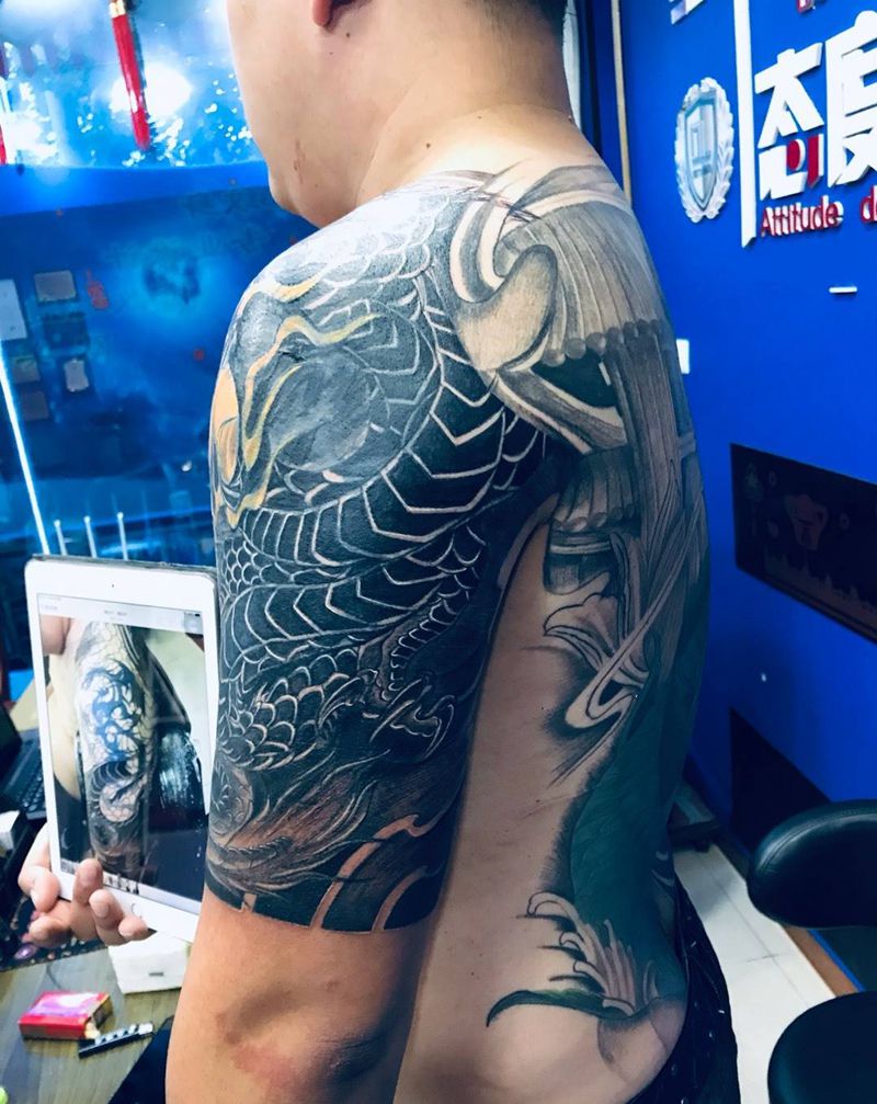 • 纹身吧推荐的披肩图腾半胛纹身图案作品展示