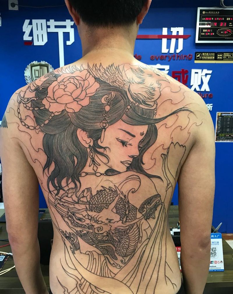 当前位置: 首页 >山东省烟台市纹身店-鼎力刺青专业纹身会所纹身图案>满背艺姬纹身图片