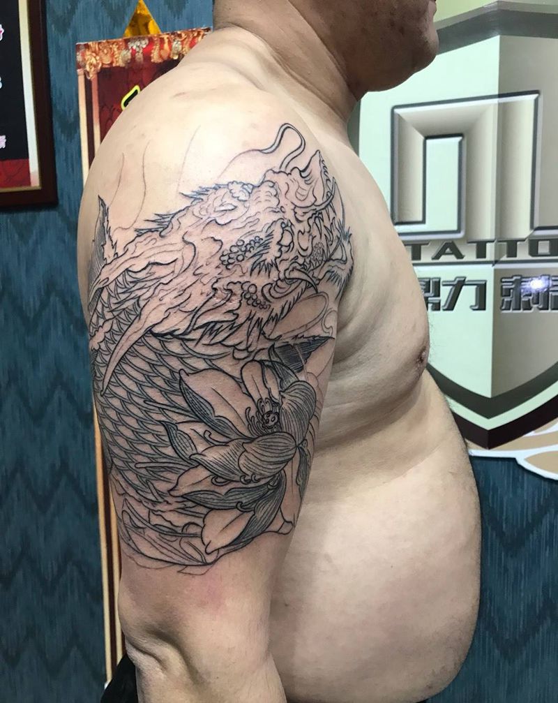当前位置: 首页 >山东省烟台市纹身店-鼎力刺青专业纹身会所纹身图案>大臂熬鱼纹身图片