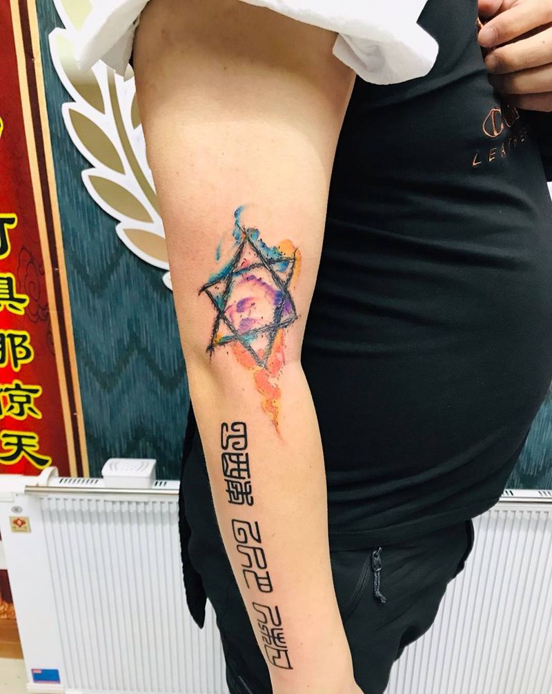 当前位置: 首页 >山东省烟台市纹身店-鼎力刺青专业纹身会所纹身图案>手臂水墨六芒星