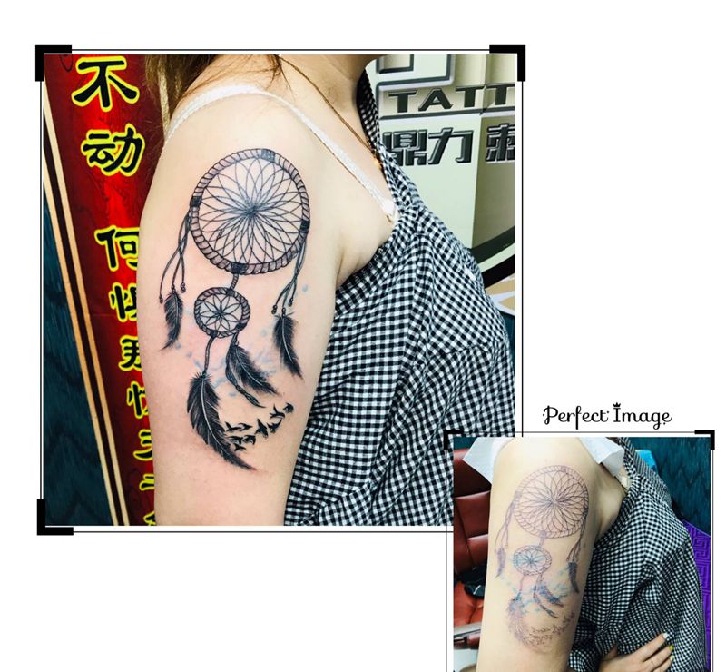 当前位置: 首页 >山东省烟台市纹身店-鼎力刺青专业纹身会所纹身图案>DL 大臂捕梦网纹身图片_手臂老传统纹身图案