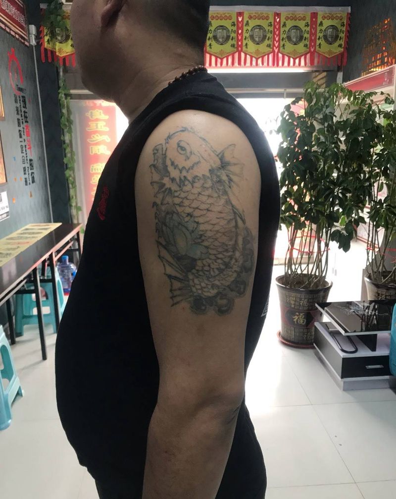 当前位置: 首页 >山东省烟台市纹身店-鼎力刺青专业纹身会所纹身图案>DL ~大臂遮盖纹身图片
