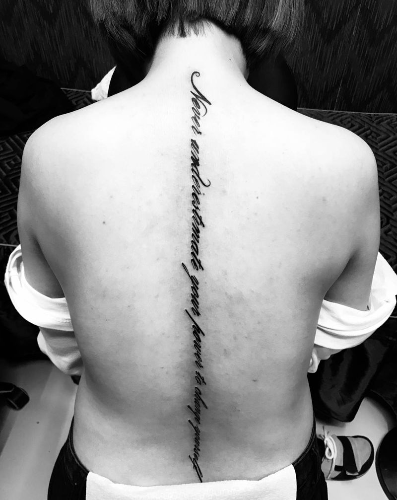 当前位置: 首页 >山东省烟台市纹身店-鼎力刺青专业纹身会所纹身图案>DL ~后脊椎英文控纹身图片_颈部腰部老传统纹身图案