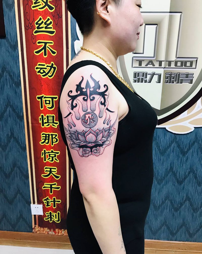 当前位置: 首页 >山东省烟台市纹身店-鼎力刺青专业纹身会所纹身图案>DL 大臂梵花图腾纹身图片_手臂点刺纹身图案