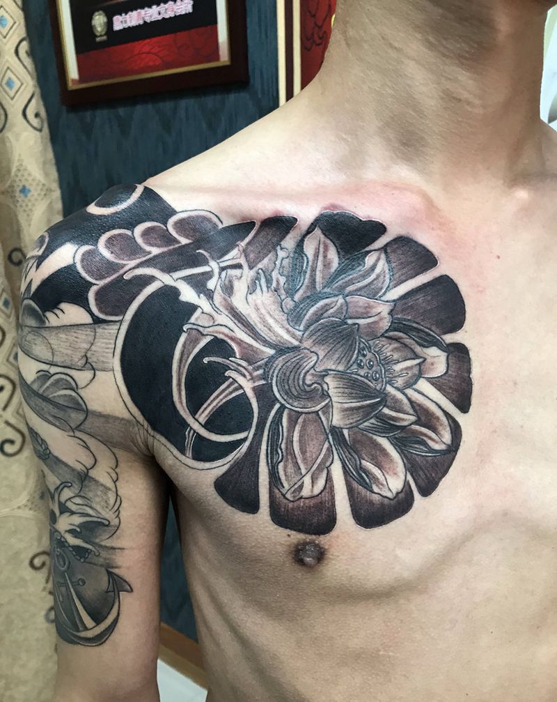 • 女性大花胸纹身_43张霸气漂亮的女性大花胸纹身图案作品