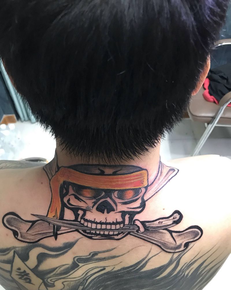 当前位置: 首页 >山东省烟台市纹身店-鼎力刺青专业纹身会所纹身图案>DL 后颈骷髅头纹身图片_颈部老传统纹身图案