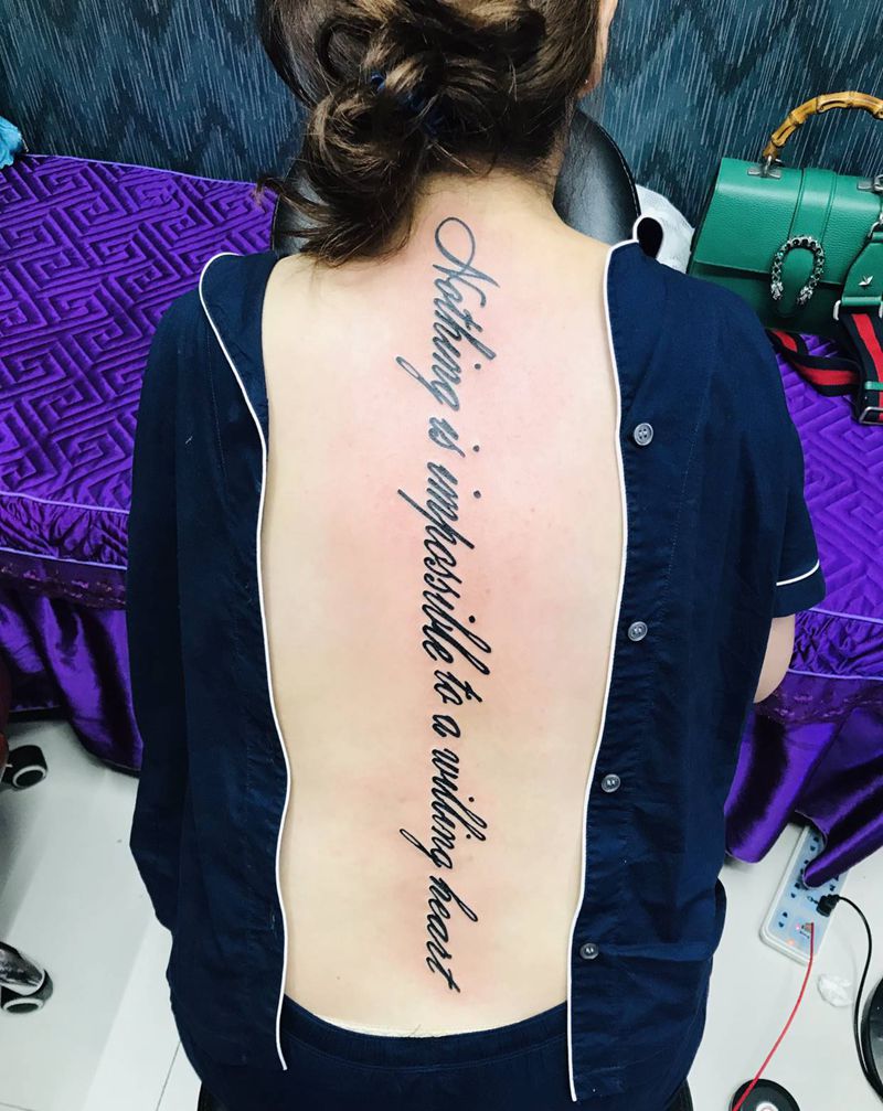当前位置: 首页 >山东省烟台市纹身店-鼎力刺青专业纹身会所纹身图案>DL 后脊椎英文控纹身图片_背部老传统纹身图案
