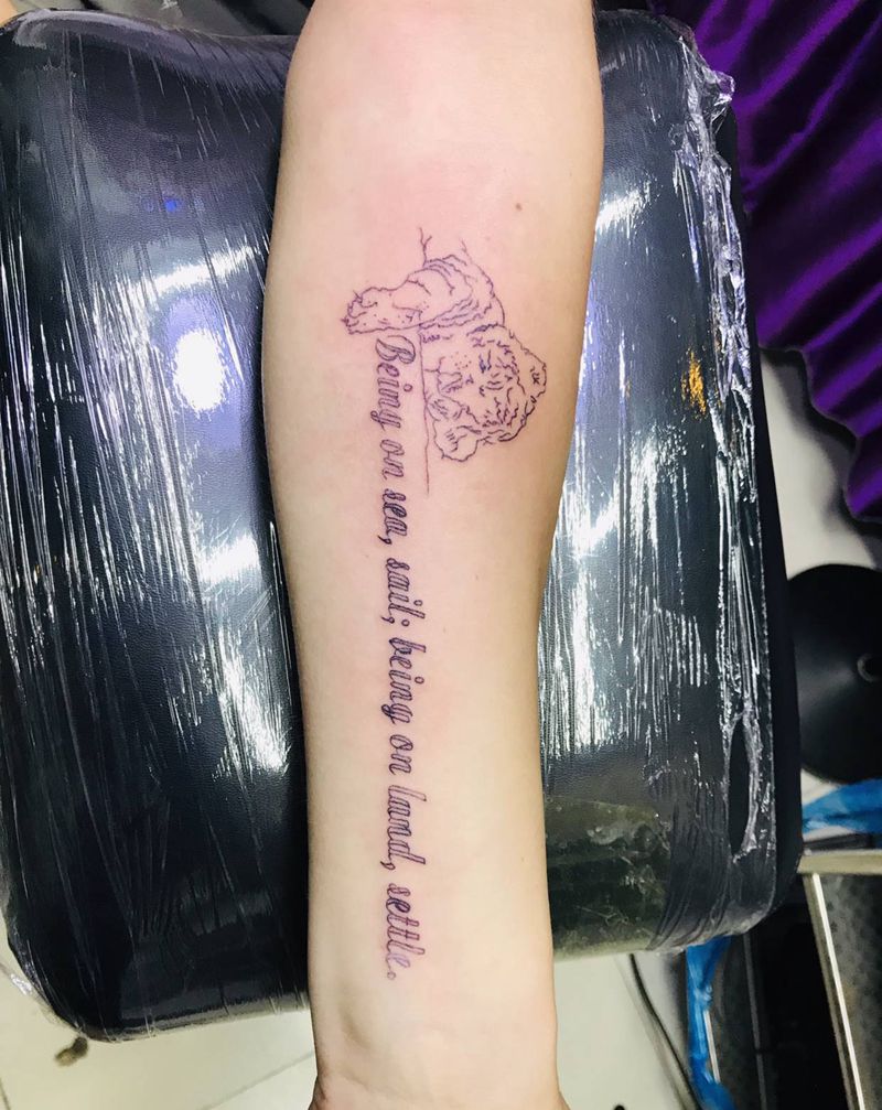 当前位置: 首页 >山东省烟台市纹身店-鼎力刺青专业纹身会所纹身图案>DL 小臂内侧英文控纹身图片_手臂老传统纹身图案