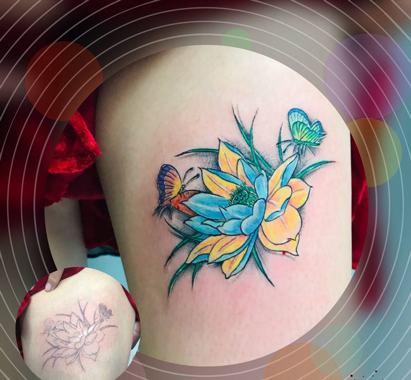 当前位置: 首页 >山东省烟台市纹身店-鼎力刺青专业纹身会所纹身图案>DL 大腿内侧疤痕遮盖纹身图片_腿部老传统纹身图案