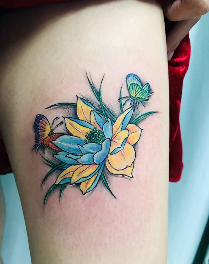 当前位置: 首页 >山东省烟台市纹身店-鼎力刺青专业纹身会所纹身图案>DL 大腿内侧疤痕遮盖纹身图片_腿部老传统纹身图案