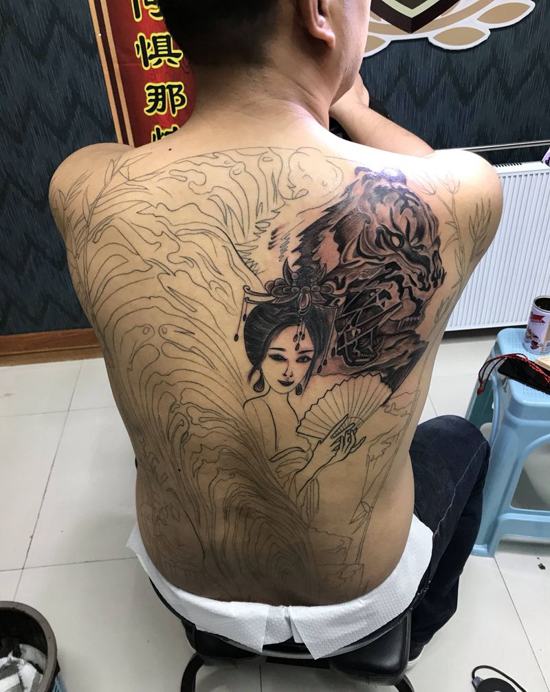 当前位置: 首页 >山东省烟台市纹身店-鼎力刺青专业纹身会所纹身图案>DL ~虎姬未完成纹身图片_背部老传统纹身图案