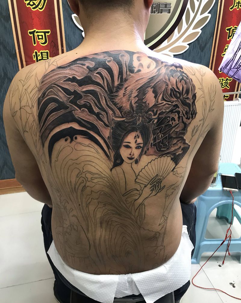 当前位置: 首页 >山东省烟台市纹身店-鼎力刺青专业纹身会所纹身图案>DL ~虎姬未完成纹身图片_背部老传统纹身图案